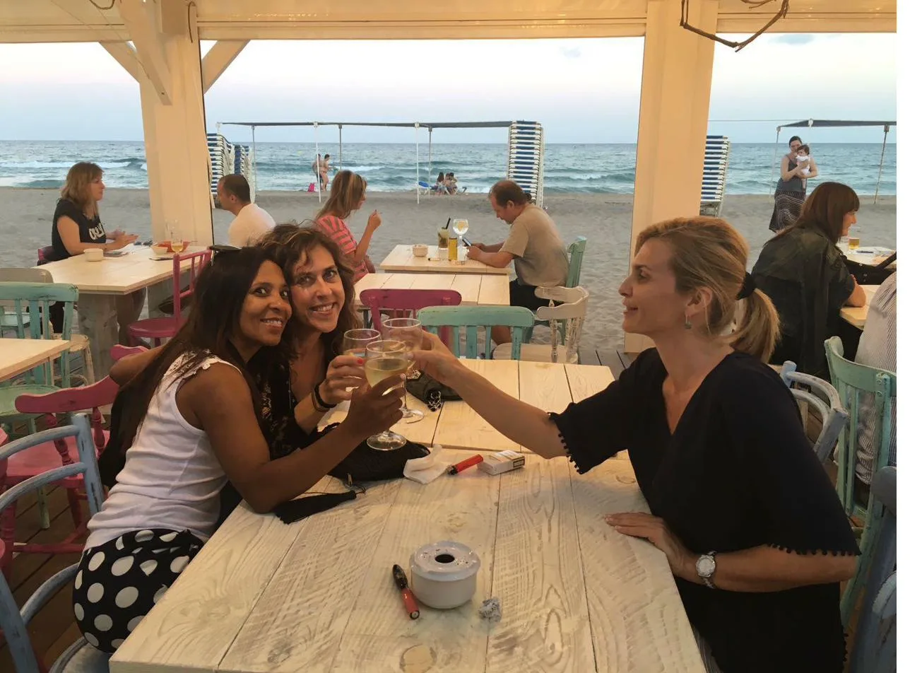We close the night at our favourite beachfront spot — the one Merche saves for special evenings. The tapas are generous, the setting is the sea, and nobody is in a hurry to leave.